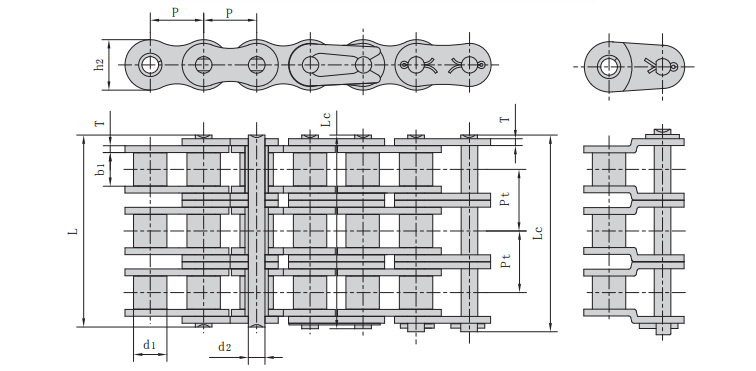 | 鏈號 | 節距 | 滾子直徑 | 內節內寬 | 銷軸直徑 | 銷軸長度 | 內鏈板高度 | 鏈板厚度 | 排距 | 抗拉強度 | 平均抗拉強度 | 每米長重 | |