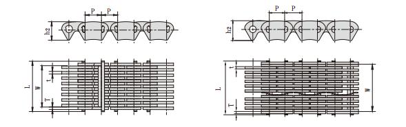 滾銷式靜音鏈主要型號有:節(jié)距,鏈寬,銷軸長度,鏈板高度,鏈板厚度,導向型式,片數,抗拉強度,每米長重