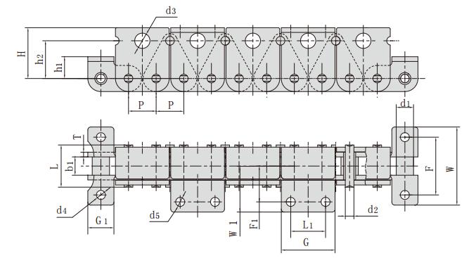 雙節距帶特殊附件輸送鏈